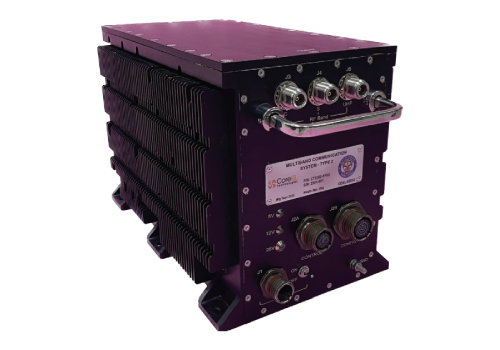 Multiband Communication System is a customized 3/4th ATR system comprising of three bands of communication links: C-Band Full Duplex LOS, UHF Band Half Duplex LOS, S-Band Full Duplex Satcom. The unit is designed to be installed in the ship and inside an Autonomous under water vehicle. The system also consists of two base band modules to generate the necessary waveforms.